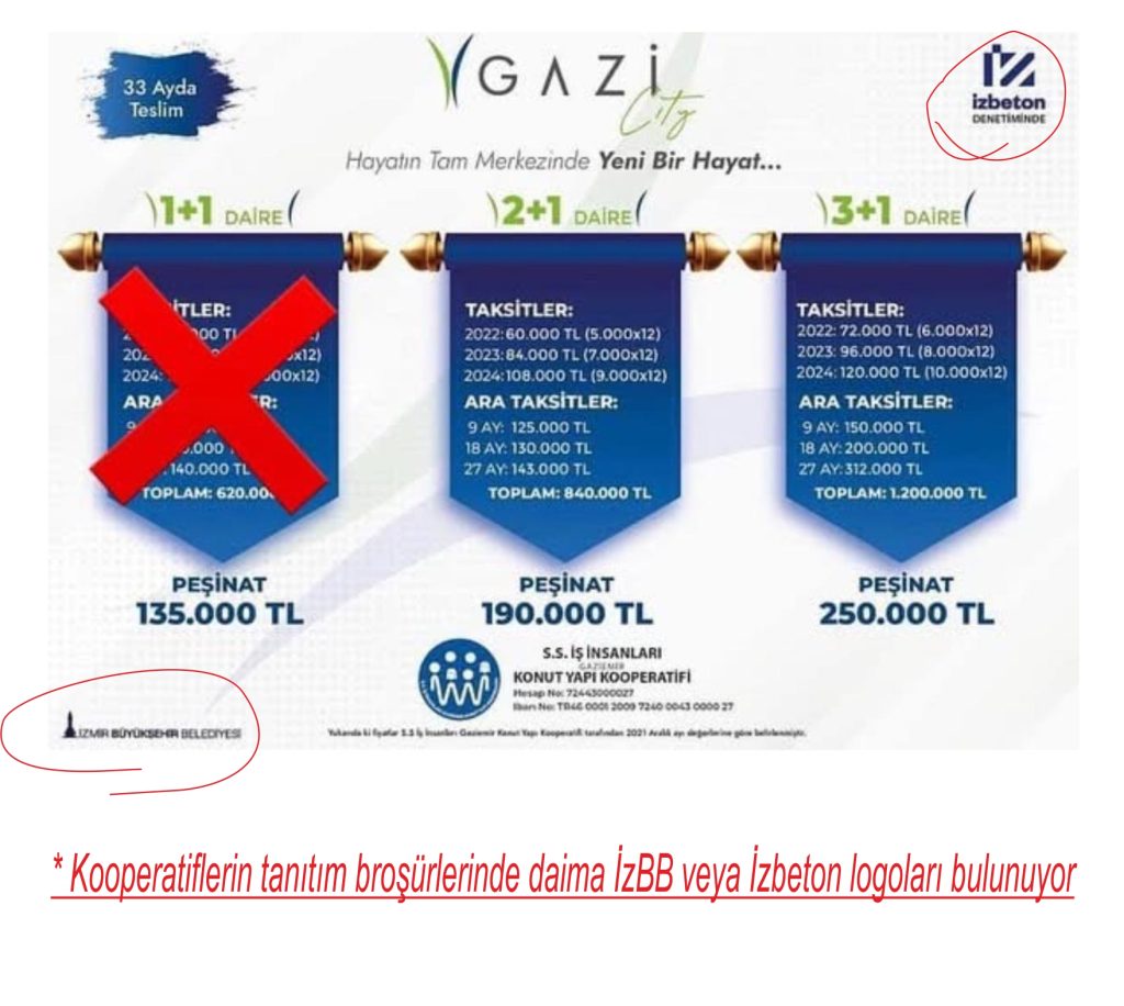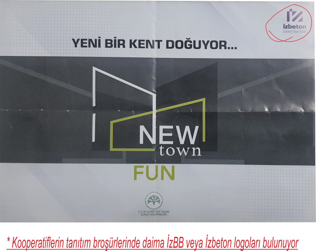 Kooperatiflerin tamamı İzmir Büyükşehir Belediyesi ve İzbeton logolu broşürlerle üye topladı.