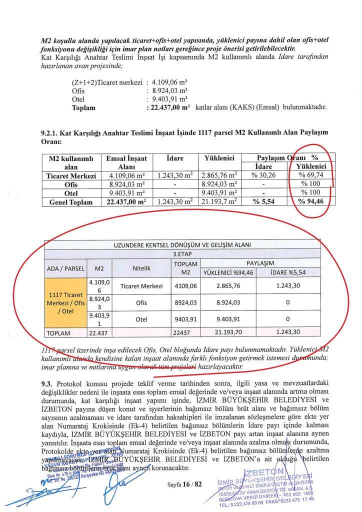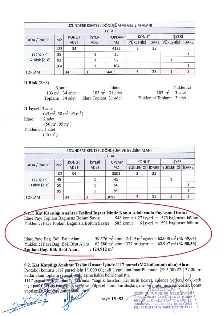Newtown (İş Alemi Yeni Yaşam) kooperatifinin konut ve iş merkezleri üzerindeki haklarını gösteren İzbeton protokolü içeriği.
